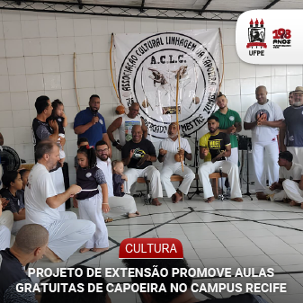 O projeto de extensão Capoeira com a UFPE está com inscrições abertas para os interessados em participar das aulas gratuitas de capoeira. Os encontros ocorrem de segunda a quinta-feira, das 12h às 13h, em diferentes espaços do Campus Recife da Universidade. Podem participar pessoas a partir de 18 anos, em qualquer nível. Inscrições e outras informações podem ser obtidas por meio do telefone do coordenador do projeto, o professor Henrique Gerson Kohl (Mestre Tchê): (81) 99960-0938.