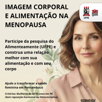O grupo de pesquisa e extensão Alimenteamente, ligado ao curso de Nutrição do Centro Acadêmico de Vitória (CAV), recruta voluntárias para pesquisa que tem como objetivo investigar que repercussões a menopausa pode causar na imagem corporal e no comportamento alimentar de mulheres no Estado de Pernambuco. A pesquisa é voluntária e sigilosa, e pode ser realizada por meio do preenchimento de formulário on-line.
