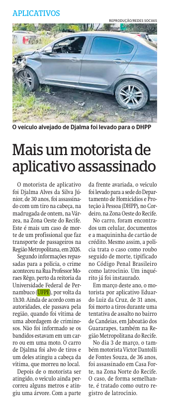 - Diário de Pernambuco-Mais um motorista de aplicativo assassinado
