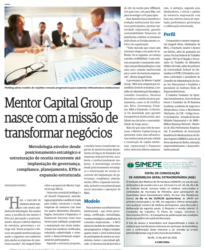 - Diário de Pernambuco - Mentor Capital Group nasce com a missão de transformar negócios