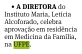 A DIRETORA do Instituto Maria, Leticia Alcoforado, celebra aprovação em residência em Medicina da Família, na UFPE.