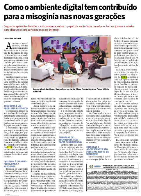 - Jornal do Commercio- Como o ambiente digital tem contribuído para a misoginia nas novas gerações