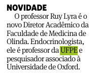 O professor Ruy Lyra é o novo Diretor Acadêmico da Faculdade de Medicina de Olinda. Endocrinologista, ele é professor da UFPE e pesquisador associado à Universidade de Oxford.