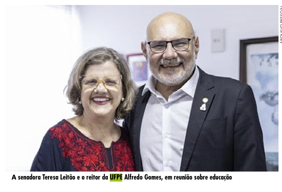 A senadora Teresa Leitão e o reitor da UFPE Alfredo Gomes, em reunião sobre educação