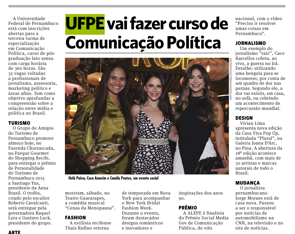 Jornal do Commercio- UFPE vai fazer curso de Comunicação Política