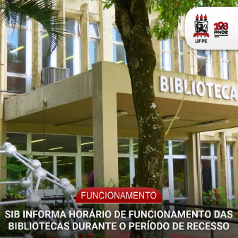 O Sistema de Bibliotecas (SIB) da Universidade Federal de Pernambuco (UFPE) divulga o horário de funcionamento da Biblioteca Central (BC) e das bibliotecas setoriais durante o período de recesso acadêmico, que segue até o dia 31 de janeiro.