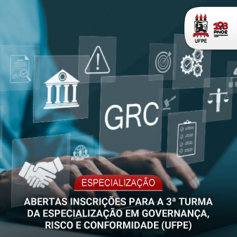 A UFPE informa a abertura das inscrições e matrículas para a 3ª Turma da Especialização em Governança, Risco e Conformidade (GRC), curso de pós-graduação lato sensu vinculado ao Laboratório de Governança, Risco e Conformidade (LabGRC) da Universidade, voltado à formação de profissionais nas áreas de governança organizacional, gestão de riscos e conformidade.