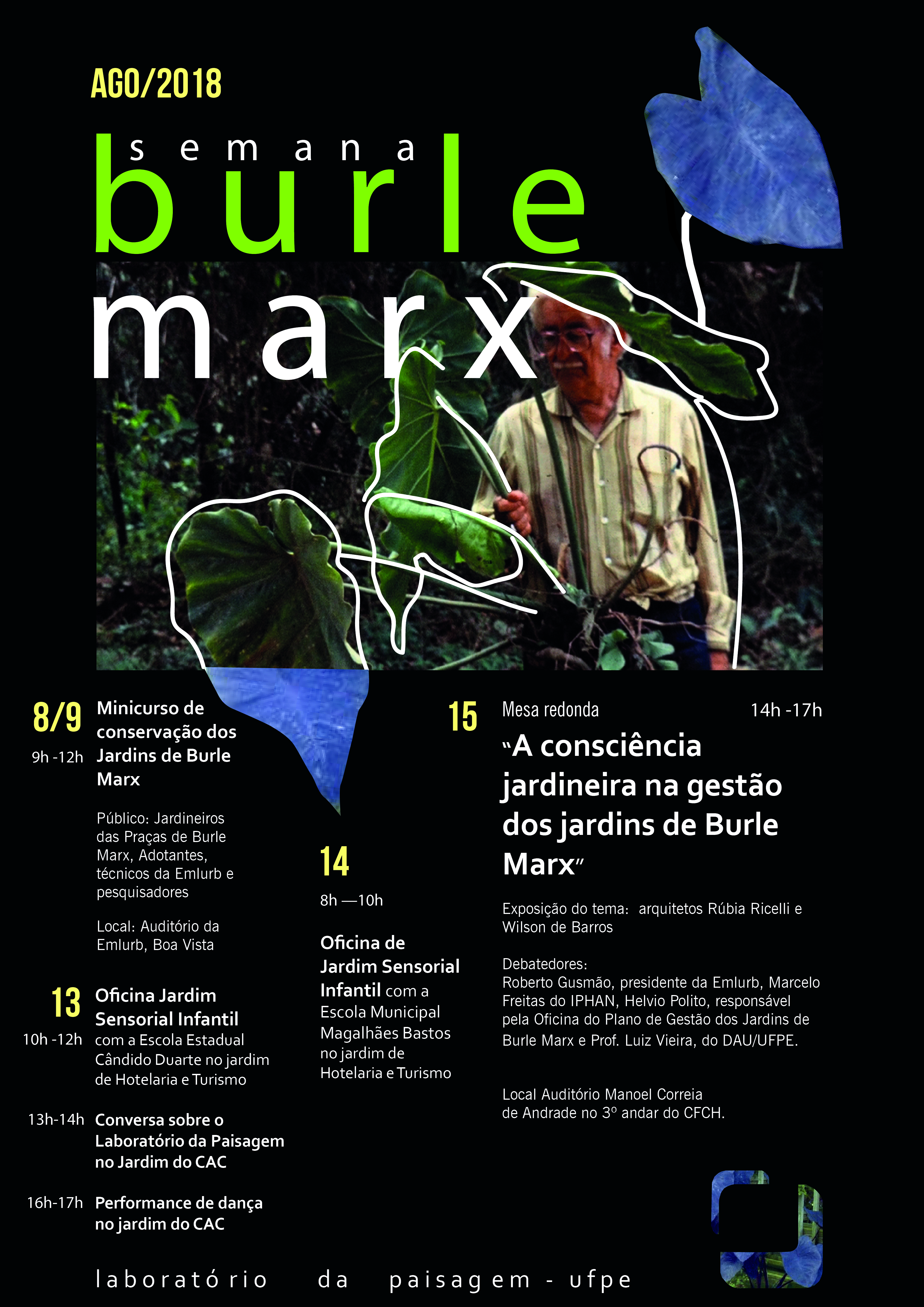 Tem início dia 6, a Semana Burle Marx 2018, que celebra anualmente o legado do paisagista que iniciou sua carreira na cidade do Recife, com a realização de exposições, palestras, apresentações e outras atividades organizadas pela Prefeitura do Recife junto a outros órgãos, como o Laboratório da Paisagem da Universidade Federal de Pernambuco, com a intenção de divulgar a vida e obra de Roberto Burle Marx para a população.