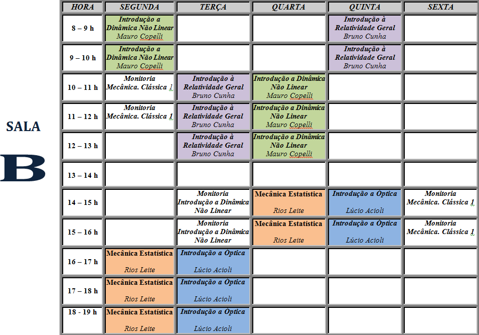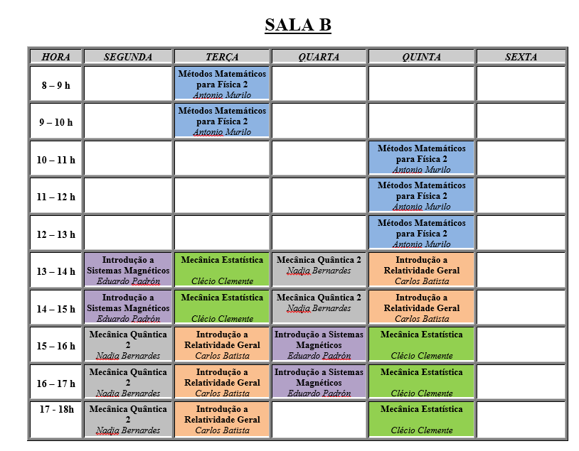 - Horário de aulas por salas - Primeiro Semestre de 2020.