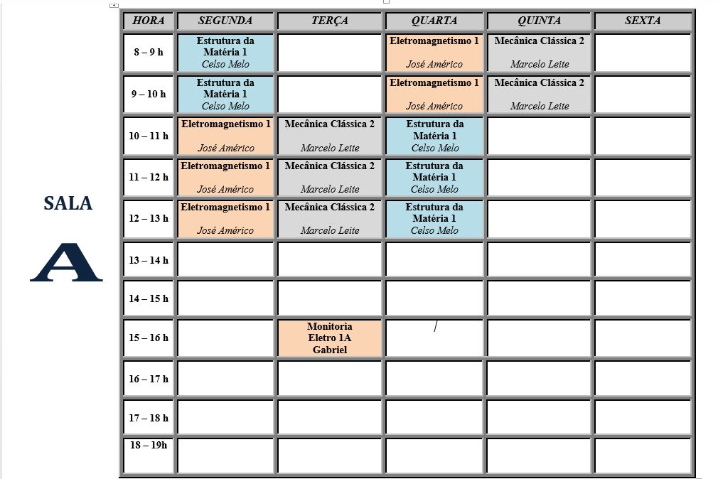 - Horário de aulas por salas - Primeiro Semestre de 2019.