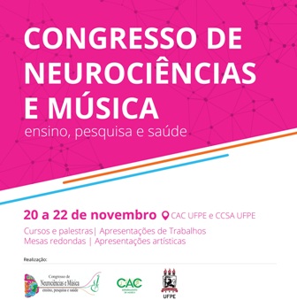 Mesas-redondas, palestras, minicursos, apresentações de trabalhos e apresentações artísticas são algumas das atividades do Congresso de Neurociências e Música, nos Centros de Artes e Comunicação (CAC) e de Ciências Sociais Aplicadas (CCSA), que será realizado de quarta-feira (20) até domingo (22), das 8h às 18h. A promoção é do Departamento de Música, com coordenação da docente, pianista e neurocientista Viviane Louro. Confira a programação