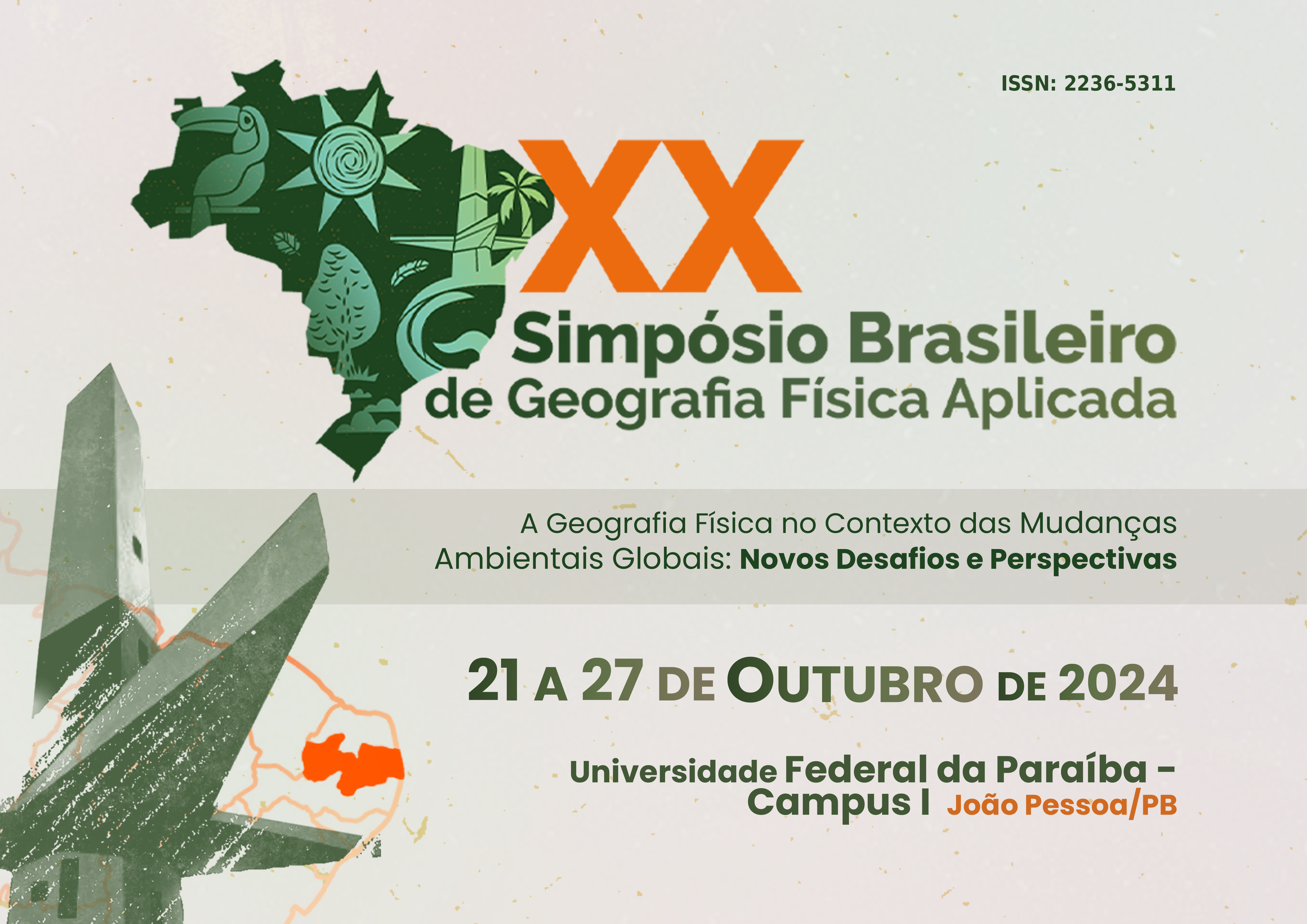 - XX Simpósio Brasileiro de Geografia Física Aplicada – SBGFA. Período: 21 a 27 de outubro. Local: João Pessoa - PB. Tema: "A Geografia Física no Contexto das Mudanças Ambientais Globais: Novos Desafios e Perspectivas". Cartaz.