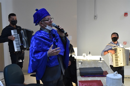 “Simbolicamente, é muito importante que, ao celebrar os 93 anos, o ‘doutor’ Onildo faça sua festa de aniversário juntamente com a festa da Universidade Federal de Pernambuco, com a celebração de seus 75 anos. Então, podemos apostar com o ‘doutor’ Onildo que nada aconteceu por acaso. É a festa da interiorização da Universidade Federal de Pernambuco, é a festa do reconhecimento da produção do conhecimento. O ‘doutor’. Onildo Almeida, ao aceitar o título de Doutor Honoris Causa, legitima os saberes outros, os saberes que não estão nos espaços da academia, os saberes que produzem a cultura e que mantêm as pessoas vivendo de acordo com seus costumes e suas tradições”, ressaltou o professor Saulo Ferreira Feitosa, do Núcleo de Ciências da Vida do CAA.