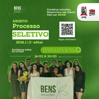 A empresa júnior Bens – Soluções Sustentáveis, vinculada ao curso de Engenharia de Energia da UFPE, está com processo seletivo aberto para a admissão de novos membros. O público-alvo são estudantes de qualquer curso da Universidade que tenham interesse em desenvolver habilidades como liderança, trabalho em equipe, gestão de projetos e visão empreendedora. As inscrições devem ser feitas até o dia 30 de março, por meio deste link.