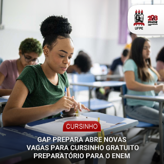O pré-acadêmico GAP Prepara, projeto de extensão vinculado à Universidade Federal de Pernambuco (UFPE), está com inscrições abertas para novos alunos interessados em participar do cursinho preparatório gratuito para o Exame Nacional do Ensino Médio (Enem). As atividades já foram iniciadas e ocorrem de segunda a quinta-feira, das 18h45 às 21h, na Coordenadoria de Educação em Ciências, Tecnologia e Inovação Extensionista (Cecine), no Campus Recife. Os interessados podem se inscrever por meio do preenchimento de formulário on-line.