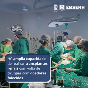 O Hospital das Clínicas da UFPE ampliou a sua capacidade de realizar transplantes renais ao voltar a fazer esses procedimentos com doador falecido, com duas cirurgias bem-sucedidas ontem (4), começando o Setembro Verde, mês de conscientização sobre a importância da doação de órgãos e tecidos. Participaram do transplante as equipes de Nefrologia, de Cirurgia Vascular e de Cirurgia Urológica do HC, que é uma unidade vinculada à Empresa Brasileira de Serviços Hospitalares (Ebserh).