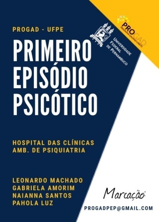 O Programa de Pesquisa e Extensão Galdino Loreto (Progad/UFPE) está iniciando serviço de atendimento ambulatorial no Hospital das Clínicas, no Ambulatório de Psiquiatria, para pessoas com primeiro episódio psicótico. O programa, coordenado pelo psiquiatra e professor Leonardo Machado, conta ainda com outros psiquiatras e atendimento em terapia ocupacional, coordenado pela terapeuta Naianna Santos. Para ser atendido, é preciso algum médico enviar mensagem para o e-mail progadpep@gmail.com com breve explicação do quadro e fornecimento de contato dos pacientes/acompanhantes para a devida marcação.