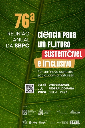Os interessados em participar da 76ª Reunião Anual da Sociedade Brasileira para o Progresso da Ciência (SBPC), com submissão de trabalho na Sessão de Pôsteres têm até 26 de março para se inscrever. Com o tema “Ciência para um futuro sustentável e inclusivo: por um novo contrato social com a natureza”, o evento será realizado de 7 a 13 de julho, no Campus Guamá da Universidade Federal do Pará (UFPA), em Belém.