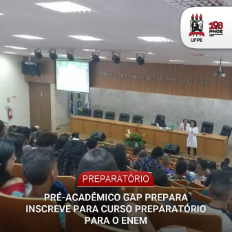 Estão abertas as inscrições para o curso preparatório para o Exame Nacional do Ensino Médio (Enem) promovido pelo GAP Prepara, projeto de extensão da Universidade Federal de Pernambuco (UFPE). O curso é voltado para alunos em situação de vulnerabilidade socioeconômica interessados em ingressar no ensino superior. As inscrições devem ser feitas por meio do link. As vagas são limitadas.