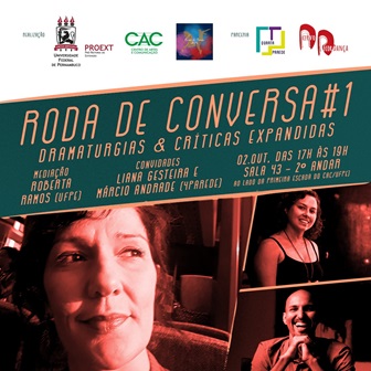 A roda de conversa, que terá formato predominantemente presencial (mas com a participação de uma convidada em videoconferência), abordará dramaturgia e crítica, que contará com a participação de dois componentes da revista digital multimídia 4Parede - Palco & Plateia Unides!, parceira do projeto: o editor-chefe do 4Parede, Márcio Andrade, com a temática sobre formatos expandidos de crítica; e a pesquisadora do Acervo Recordança, doutoranda em Dança pelo PPG Dança da UFBA, professora substituta da UFU, e também colaboradora do 4Parede, Liana Gesteira, com a temática da CosmoComposição, uma noção que a mesma vem desenvolvendo para contemplar alguns contextos de criação em dança que não se explicam pela noção de dramaturgia