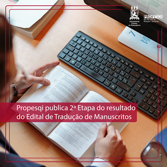 A Pró-Reitoria de Pesquisa e Inovação (Propesqi) da UFPE publicou o resultado da 2ª Etapa do Edital de Tradução de Manuscritos. A 2ª Etapa contempla propostas que foram enviadas à Propesqi até o dia 31 de julho.