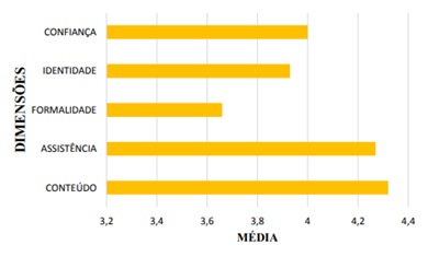 Já no ponto de vista do franqueador, o aspecto mais importante para o usuário daquele serviço é o Conteúdo (4,32) que está relacionado ao treinamento dos funcionários, a localização, higiene, diversificação do cardápio e fidelização de clientes, seguido pela Assistência (4,27), que aborda o atendimento geral ao cliente, o abastecimento de produtos e serviços e as formas e facilidades de pagamento. Por fim, assim como os franqueados, ele estabelece a Formalidade (3,66) como o critério de menos interesse dos clientes.