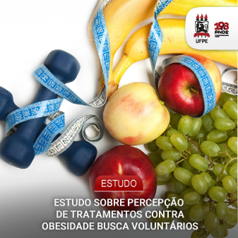Pesquisa desenvolvida no âmbito do Departamento de Ciências Farmacêuticas da UFPE busca voluntários para estudo sobre a percepção do paciente acerca dos benefícios e malefícios do tratamento com medicamentos para a obesidade. Podem participar indivíduos maiores de 18 anos que utilizam ou utilizaram medicamentos para emagrecimento. A colaboração é anônima e leva apenas alguns minutos. O formulário de participação pode ser acessado aqui.