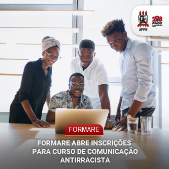 A UFPE, por meio da Escola de Formação dos Servidores (Formare), divulga a abertura das inscrições para o Curso de Comunicação Antirracista, com a professora Ana Veloso, do Departamento de Comunicação (DCom). O curso tem como público-alvo docentes e técnicos administrativos da UFPE, que podem se inscrever até as 12h do dia 2 de abril, por meio do preenchimento de formulário on-line.