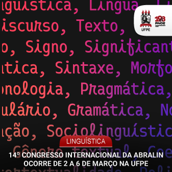 A Associação Brasileira de Linguística (Abralin) promove o 14º Congresso Internacional da Abralin (Interab), de 2 a 6 de março, no Campus Recife da Universidade Federal de Pernambuco (UFPE). Haverá atividades no Centro de Ciências Sociais Aplicadas (CCSA), na Concha Acústica, no Complexo de Convenções Eventos e Entretenimento (CCEE) e na Associação dos Docentes da UFPE (Adufepe) – além de alguns simpósios on-line.