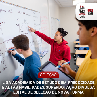 A Liga Acadêmica de Estudos em Precocidade e Altas Habilidades/Superdotação (Liga PAHS), vinculada ao Departamento de Psicologia, Inclusão e Educação do Centro de Educação (CE) da UFPE, publicou o edital de sondagem para seleção da turma 2026. A sondagem é destinada a estudantes de Pedagogia, Licenciaturas, Psicologia e interessados na temática das altas habilidades/superdotação na educação básica. As inscrições ocorrem até o dia 21 de novembro, por meio do preenchimento de formulário on-line.