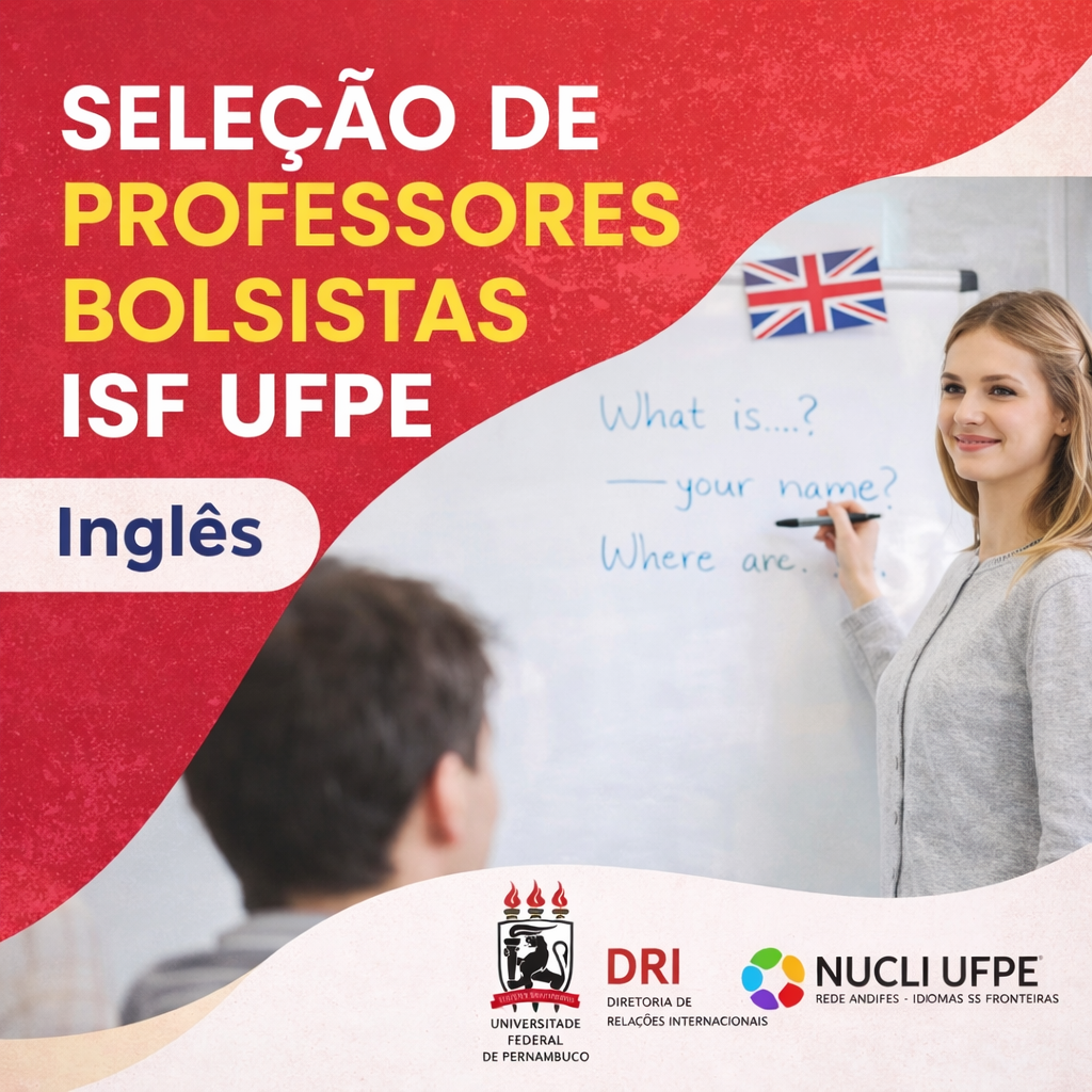 Estão abertas, até as 20h do dia 27 de Janeiro de 2026, as inscrições para o processo seletivo simplificado para professor bolsista de língua Inglesa do IsF UFPE . O candidato selecionado receberá uma bolsa mensal no valor de R$ 500,00 (quinhentos reais) por turma ministrada, podendo assumir até 3 turmas simultaneamente. As inscrições devem ser realizadas via formulário on-line.