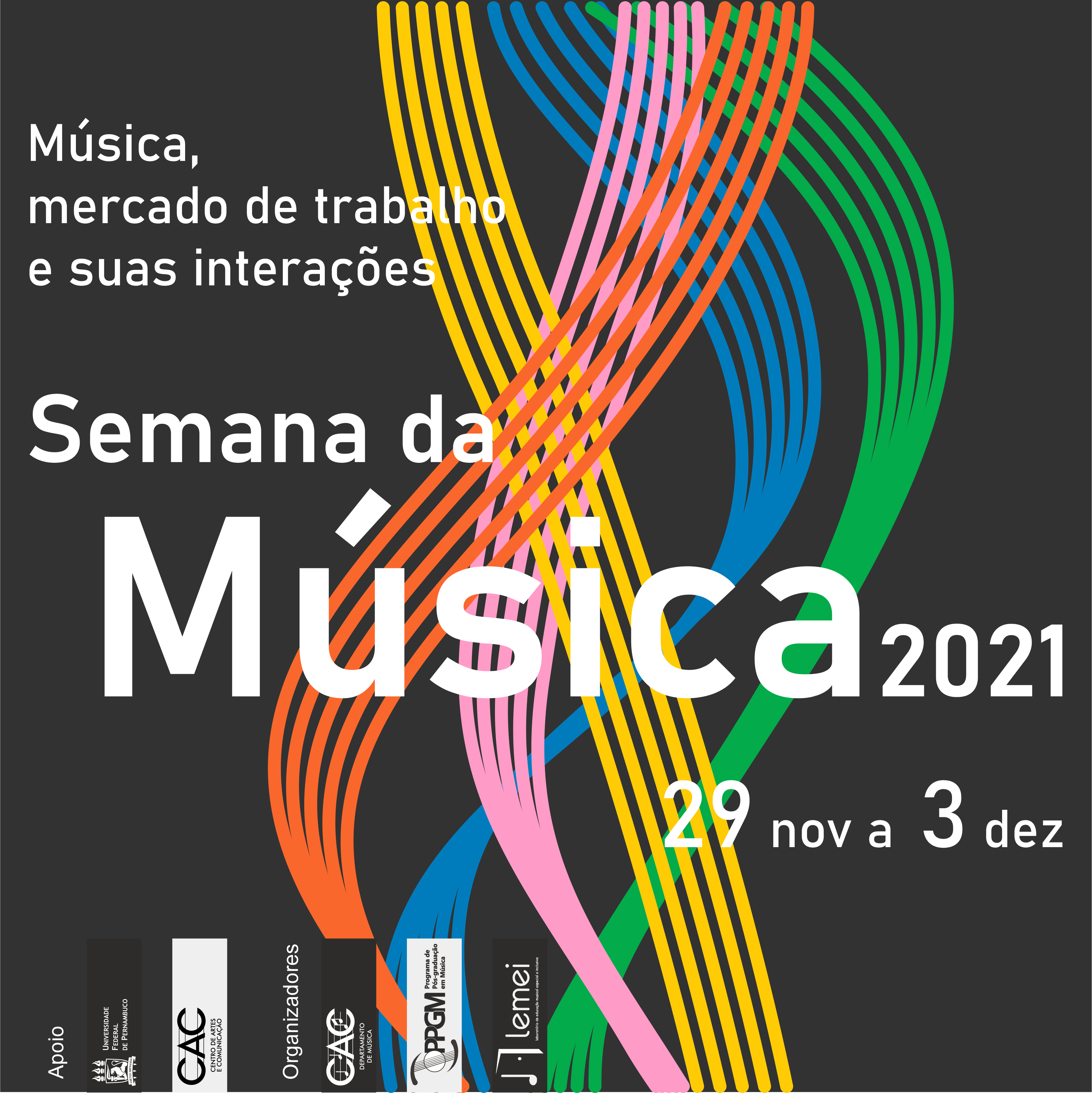Semana da Música 2021 será toda online, com transmissão ao vivo e programada, para as redes sociais. O tema é, "Música, mercado de trabalho e suas interações".