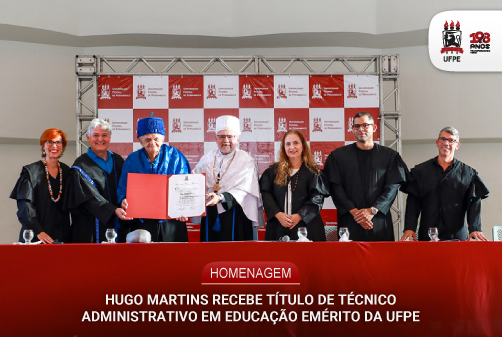 A proposta de concessão do título de Técnico Administrativo em Educação Emérito para Hugo Martins foi apresentada pelo Núcleo de Televisão e Rádios Universitárias, em nome da Superintendência de Comunicação (Supercom). O título foi aprovado por unanimidade pelo Conselho Universitário da UFPE, no dia 29 de julho deste ano.