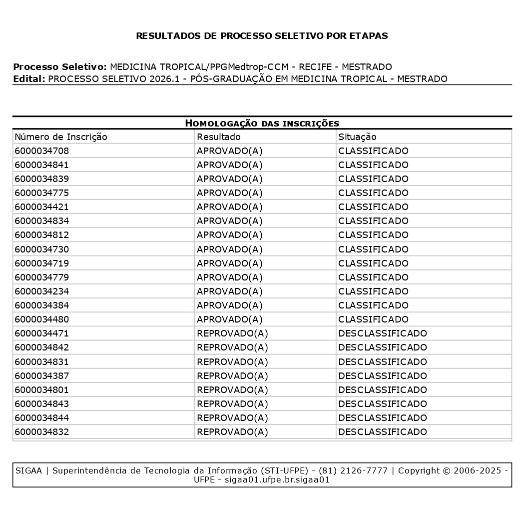 HOMOLOGAÇÃO DAS INSCRIÇÕES - MESTRADO