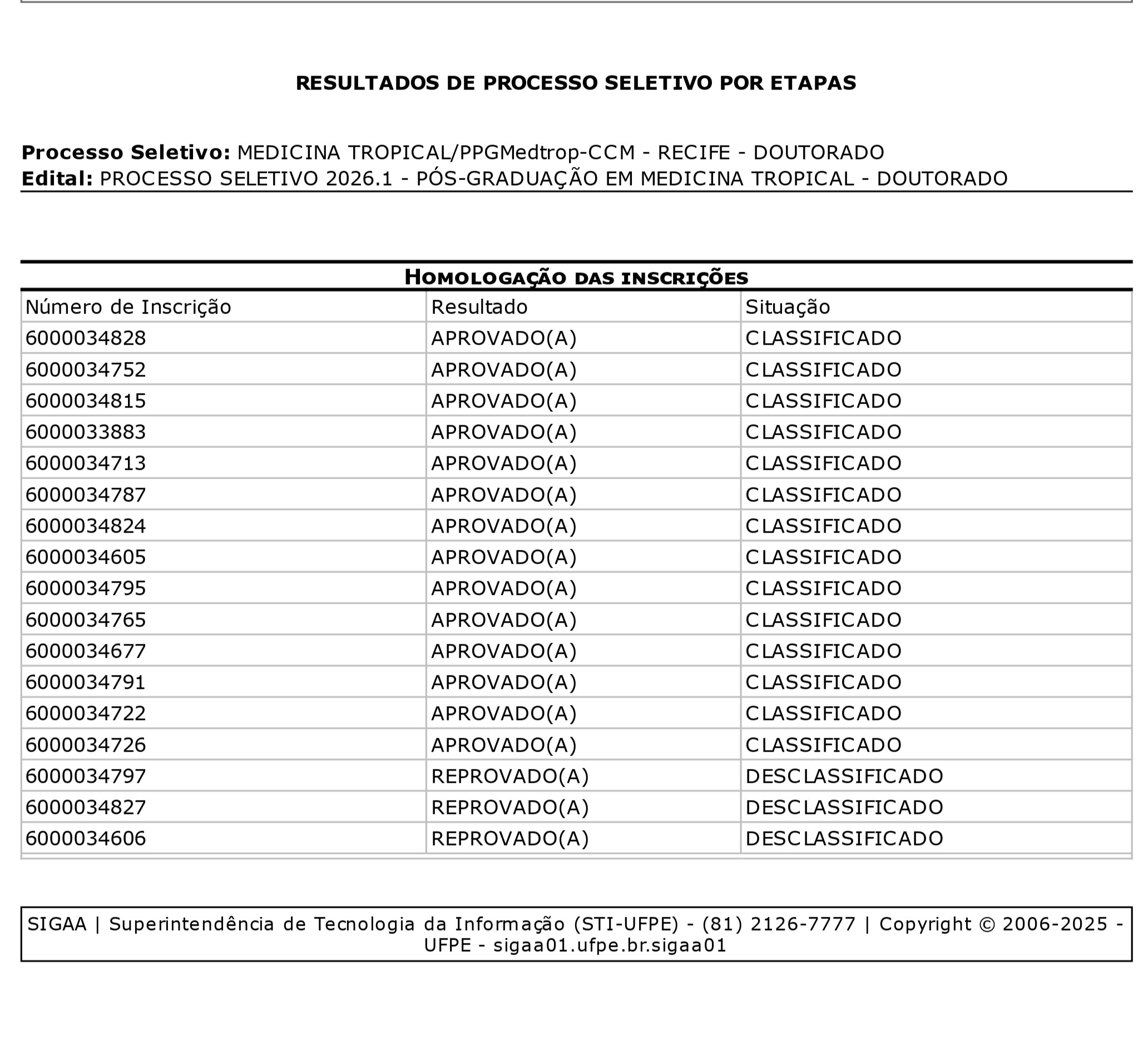 HOMOLOGAÇÃO DAS INSCRIÇÕES - DOUTORADO