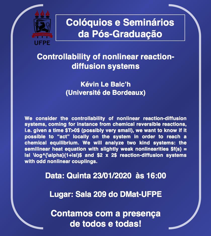Expositor: Danillo Barros de Souza (Basque Center for Applied Mathematics - BCAM - University of Basque Country)