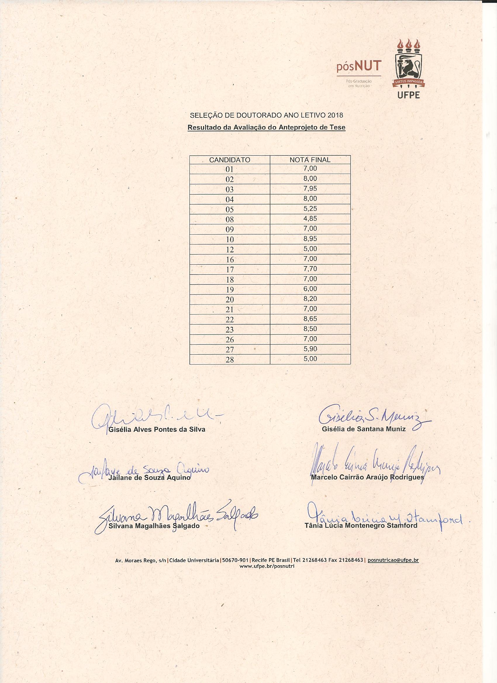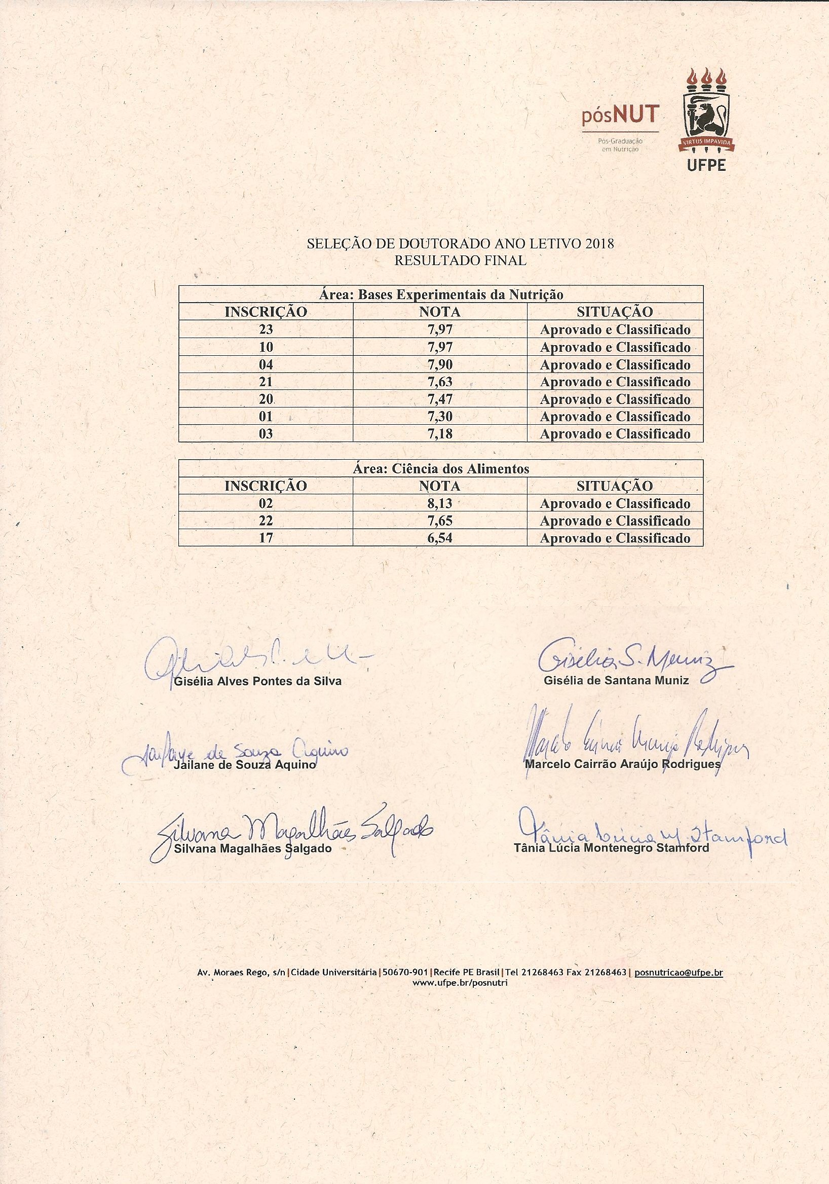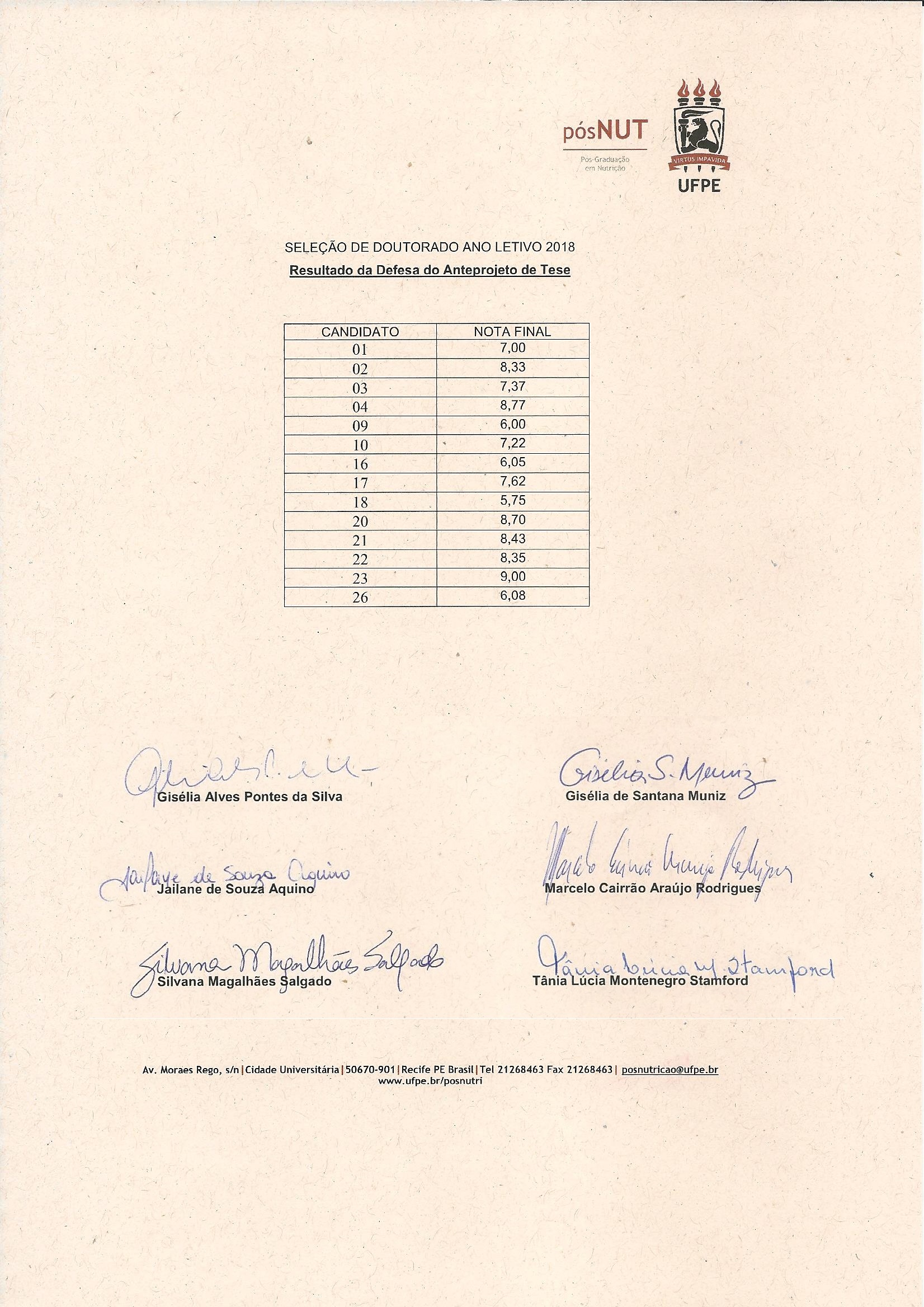 | Retificação do Edital: - Os discentes do curso de doutorado do PPGN/UFPE habilitados para participar do processo de seleção devem reunir a documentação necessária (item 5 deste edital) e entregá-la junto a secretaria do programa até o dia 11 de fevereiro de 2019, das 08:00 às 15:00 h;