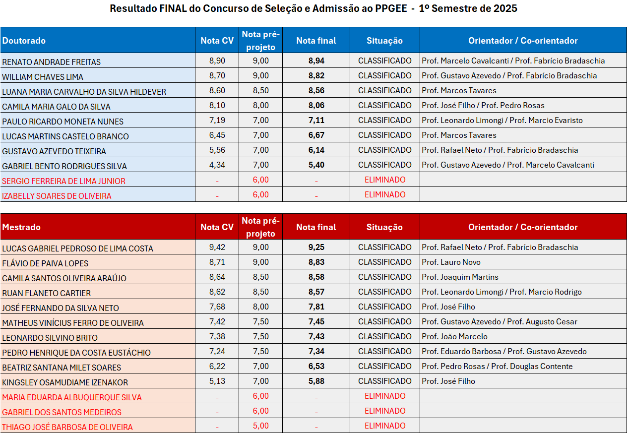 O Programa de Pós-Graduação em Engenharia Elétrica da UFPE abre inscrições para o Concurso Público de Seleção e Admissão - 2º semestre de 2025.