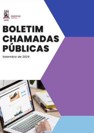 A Pró-Reitoria de Pesquisa e Inovação (Propesqi) da UFPE divulgou o Boletim Chamadas Públicas do mês de setembro. São apresentadas no Boletim oportunidades de incentivo à pesquisa e inovação em diversas áreas de conhecimento disponibilizadas pelos principais órgãos de fomento nacionais e internacionais, além das chamadas internas. O boletim pode ser acessado no site da Propesqi.