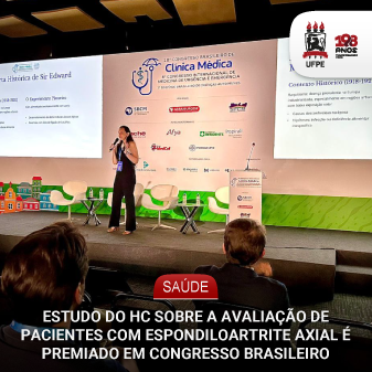 Um estudo científico desenvolvido no Hospital das Clínicas da UFPE que reforça a importância da avaliação de mecanismos não inflamatórios de dor e da qualidade do sono para um manejo mais abrangente e centrado em pacientes com espondiloartrite axial foi premiado com o segundo lugar no 18º Congresso Brasileiro de Clínica Médica, realizado no Centro de Convenções de Pernambuco, em outubro. O HC é uma unidade vinculada à Empresa Brasileira de Serviços Hospitalares (Ebserh).