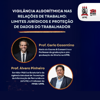 A Liga Acadêmica de Direito Digital, Sociedade e Tecnologia (Ligaddos), vinculada à Faculdade de Direito do Recife (FDR) da UFPE, promove debate aberto no dia 4 de maio sobre o tema “Vigilância algorítmica nas relações de trabalho: limites jurídicos e proteção de dados do trabalhador”. O evento ocorre no Espaço Memória da FDR, no horário das 16h30 às 18h, e é aberto ao público. As inscrições devem ser feitas por meio do Sigaa.