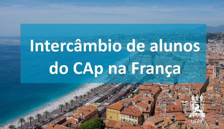 Doze alunos do Colégio de Aplicação (CAp) da Universidade Federal de Pernambuco (UFPE) participam de intercâmbio linguístico-cultural, em Nice e em cidades vizinhas, no sul na França. A viagem de ida será amanhã (14), e o retorno será no dia 28 deste mês. O grupo será acompanhado pela professora de língua francesa do CAp Fernanda Cristina Puça França.