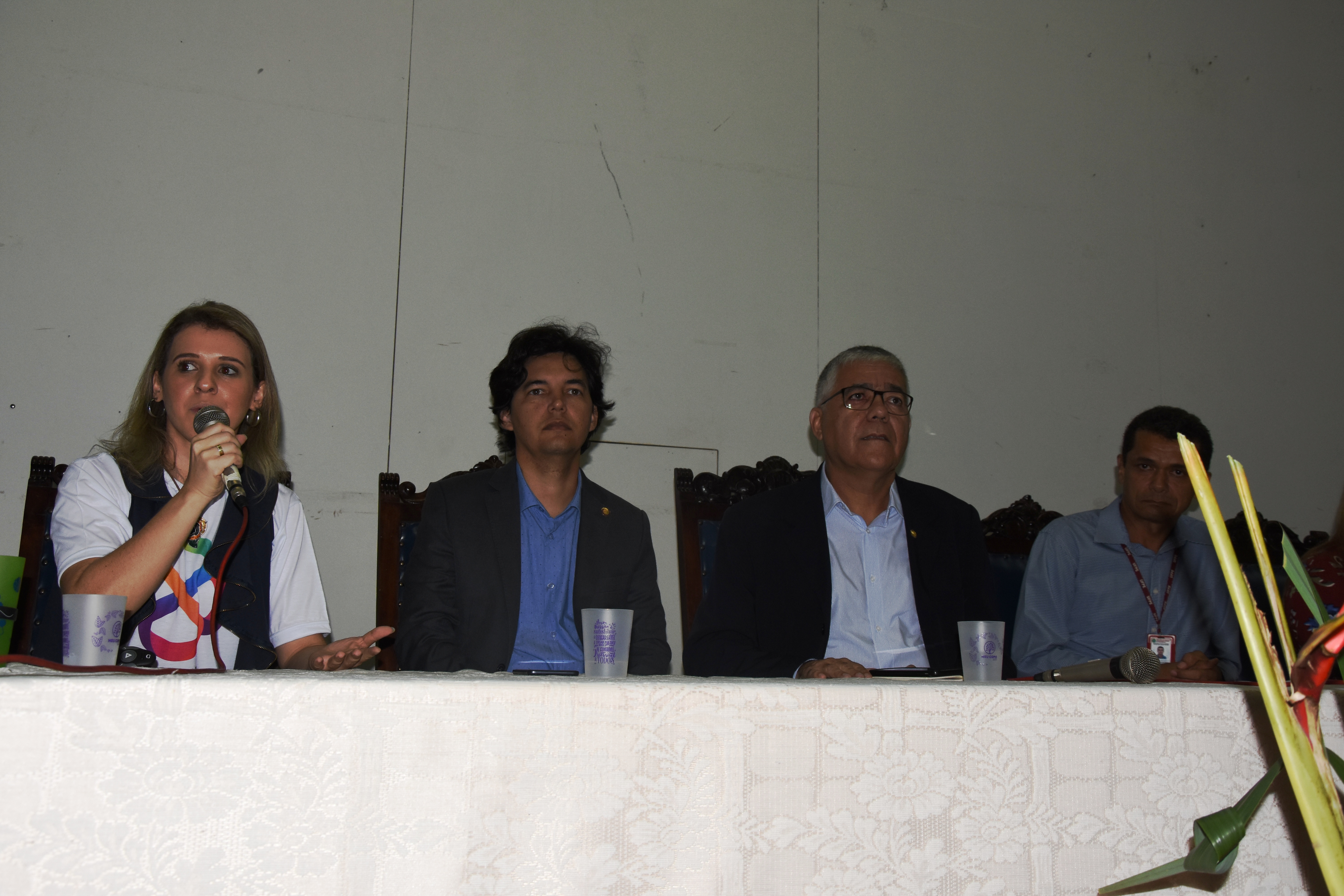 Susanne Batista aproveitou a oportunidade para apresentar o Instituto Lixo Zero Brasil e defendeu a participação de todos para a concretização de uma cidade sustentável. “A nossa missão aqui é mostrar como vocês podem somar para essa transformação”, afirmou. Ela fez parte da mesa de abertura junto ao reitor Anísio Brasileiro; o diretor da Diretoria de Gestão Ambiental (DGA), Manoel de Castro; e os pró-reitores de Planejamento, Orçamento e Finanças (Proplan), Thiago Galvão, e de Gestão Administrativa (Progest), Paula Albuquerque.