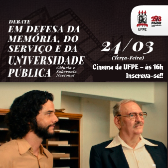 Estão abertas as inscrições para o debate "Em defesa da memória, do serviço e da universidade pública - Ciência e soberania nacional", que ocorre no próximo dia 24, às 16h, no Cinema da UFPE. O evento tem como objetivo promover a discussão sobre questões como a memória do serviço público, o desenvolvimento do financiamento da educação e as consequências do teto de gastos para a ciência, tecnologia e soberania nacional. Os interessados em participar do evento devem se inscrever previamente, até o dia 23 de março, por meio do preenchimento de formulário on-line. As vagas são limitadas.