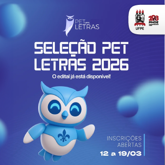 O Programa de Educação Tutorial (PET) Letras está com processo seletivo aberto para novos integrantes em 2026. A seleção é destinada a estudantes do curso de Letras da UFPE interessados em participar das atividades de ensino, pesquisa e extensão desenvolvidas pelo grupo. As inscrições estão abertas até 19 de março, por meio de formulário disponível neste link.