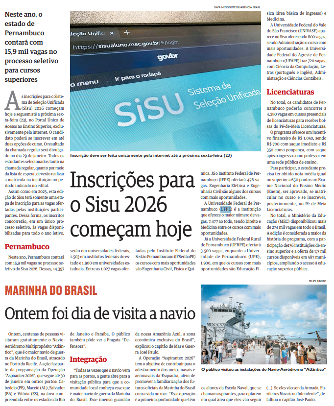 - Folha de Pernambuco - Inscrições para o Sisu 2026 começam hoje