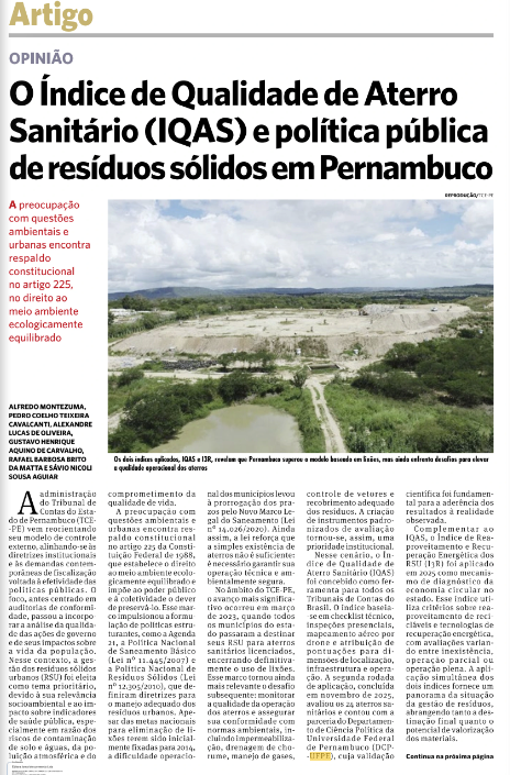 - Jornal do Commercio- O Índice de Qualidade de Aterro Sanitário (IQAS) e política pública de resíduos sólidos em Pernambuco